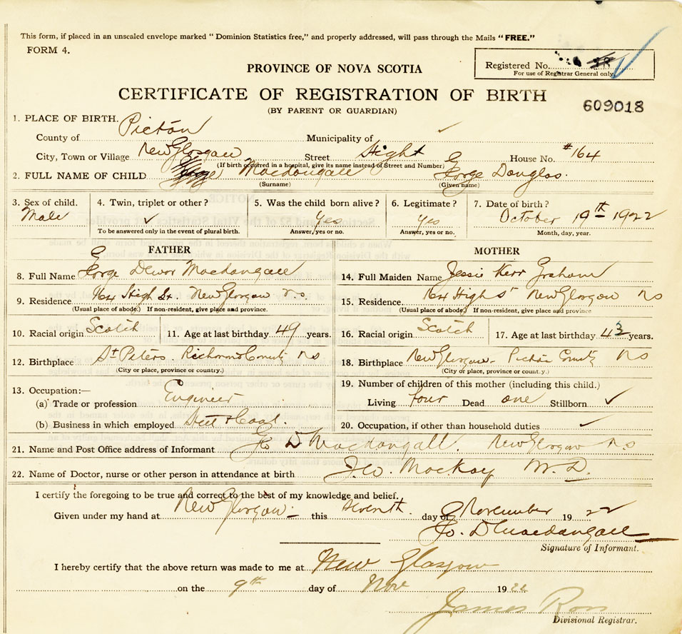 21. Name and Post Office address of Informant George D. MacDougall New Glasgow