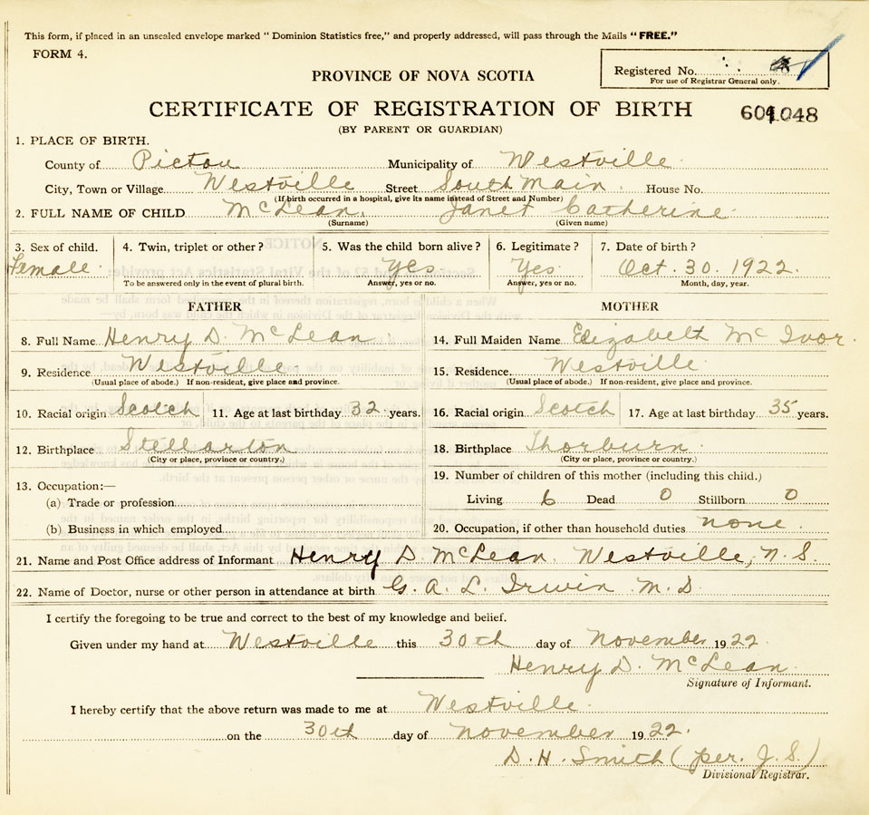 Nova Scotia Archives — https://archives.novascotia.ca/vital-statistics/birth/?ID=421498