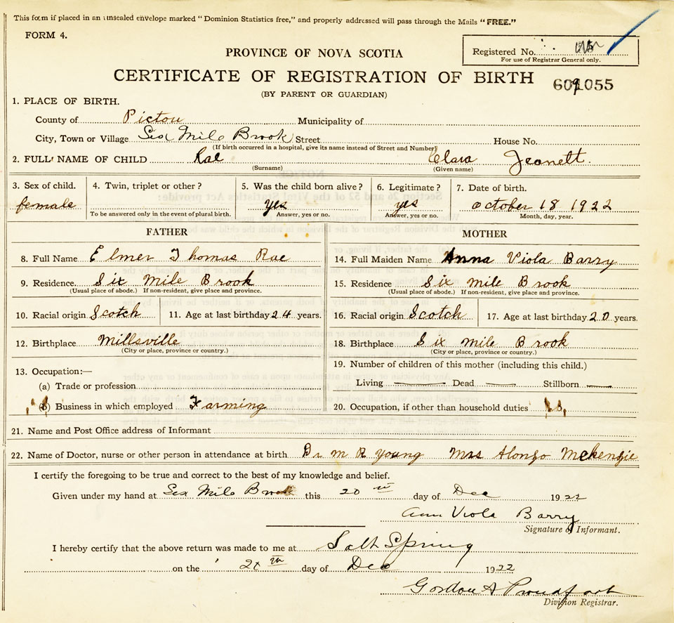Nova Scotia Archives — https://archives.novascotia.ca/vital-statistics/birth/?ID=421505
