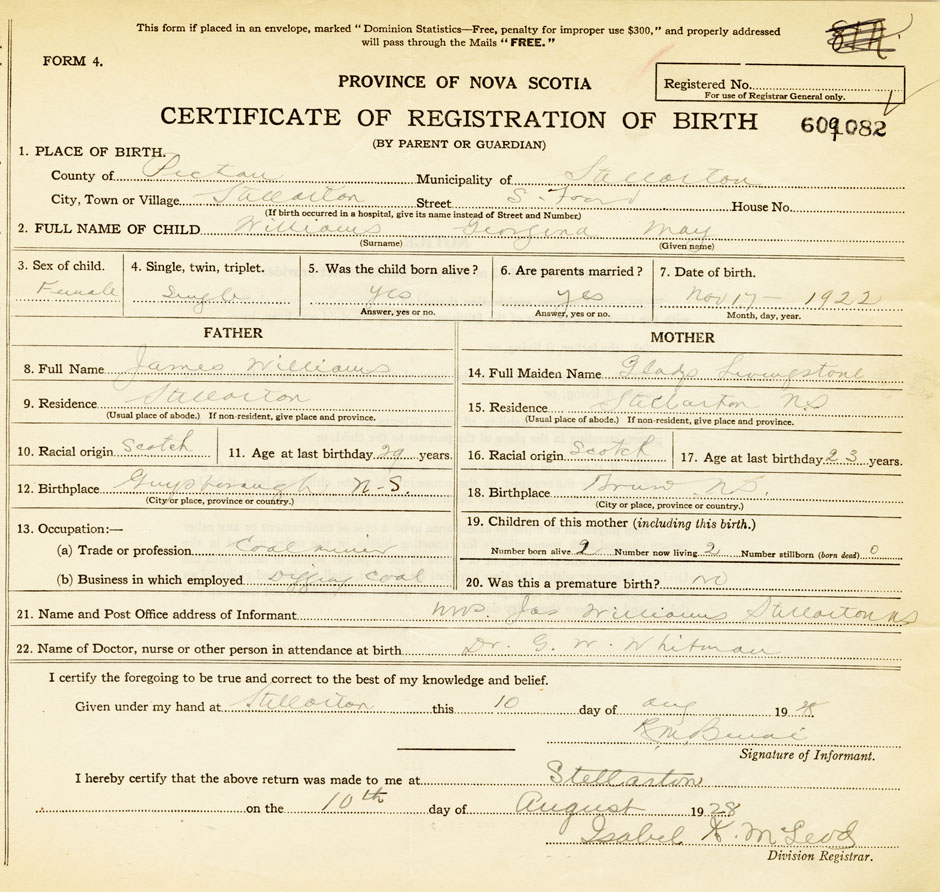Nova Scotia Archives — https://archives.novascotia.ca/vital-statistics/birth/?ID=421532