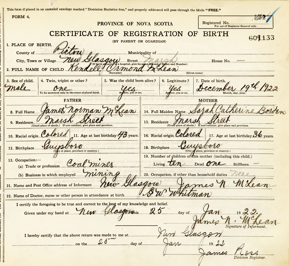 21. Name and Post Office address of Informant James N McLean New Glasgow