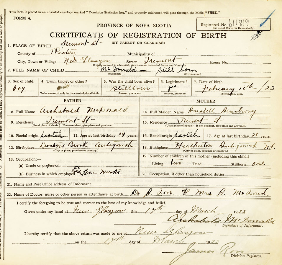 Nova Scotia Archives — https://archives.novascotia.ca/vital-statistics/birth/?ID=421708