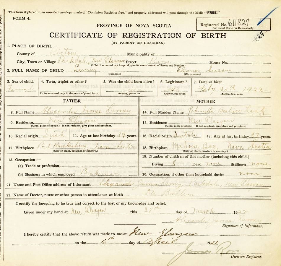 Nova Scotia Archives — https://archives.novascotia.ca/vital-statistics/birth/?ID=421716