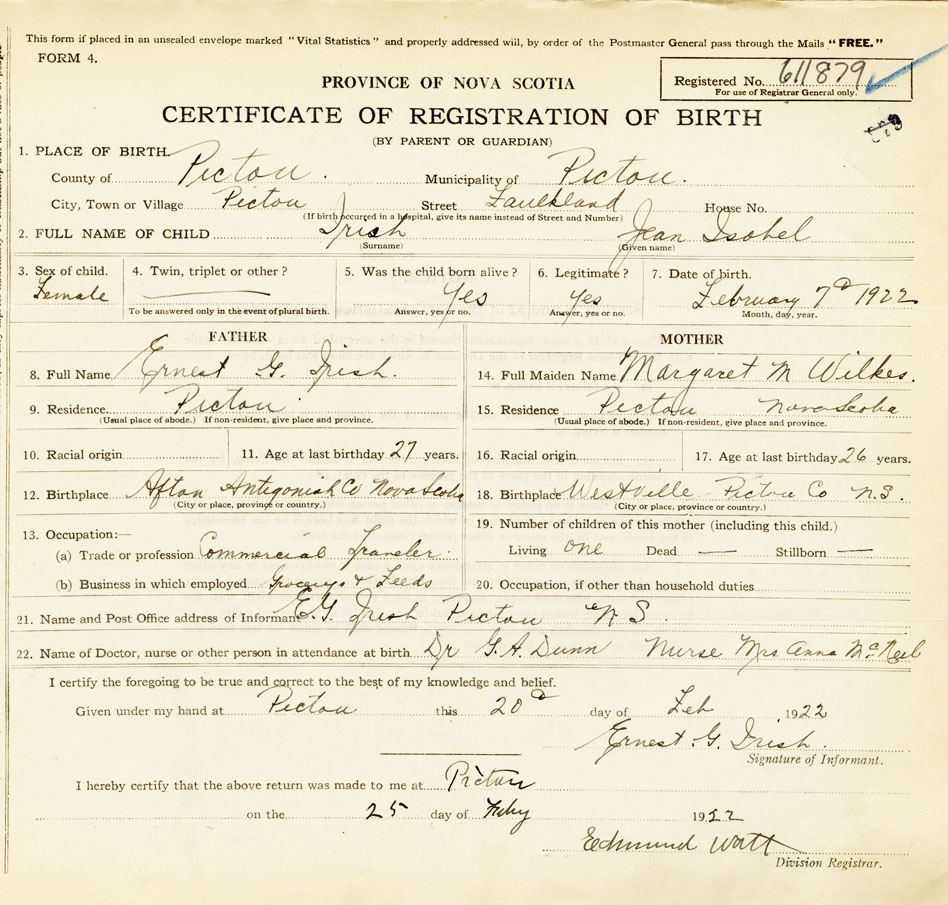 Nova Scotia Archives — https://archives.novascotia.ca/vital-statistics/birth/?ID=421768