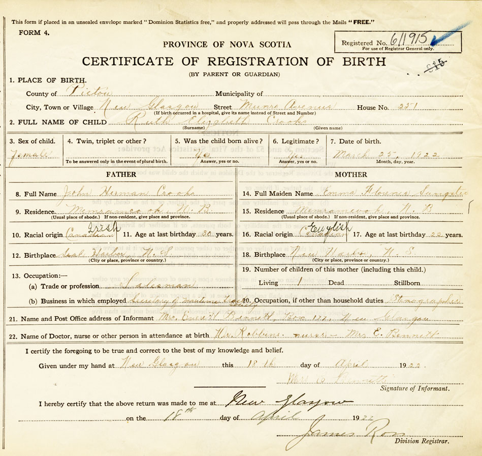 Nova Scotia Archives — https://archives.novascotia.ca/vital-statistics/birth/?ID=421804