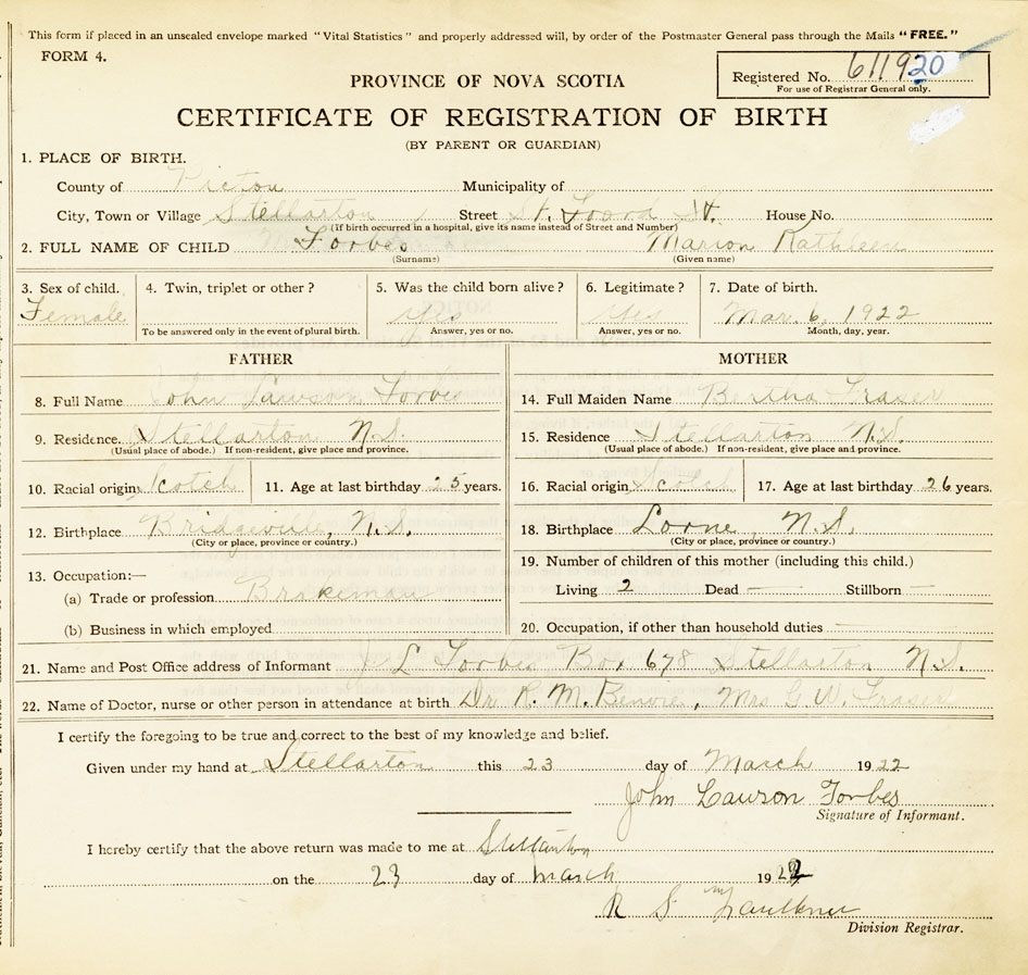 Nova Scotia Archives — https://archives.novascotia.ca/vital-statistics/birth/?ID=421809