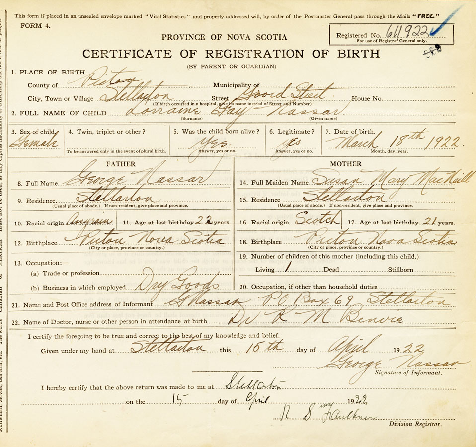 Nova Scotia Archives — https://archives.novascotia.ca/vital-statistics/birth/?ID=421811