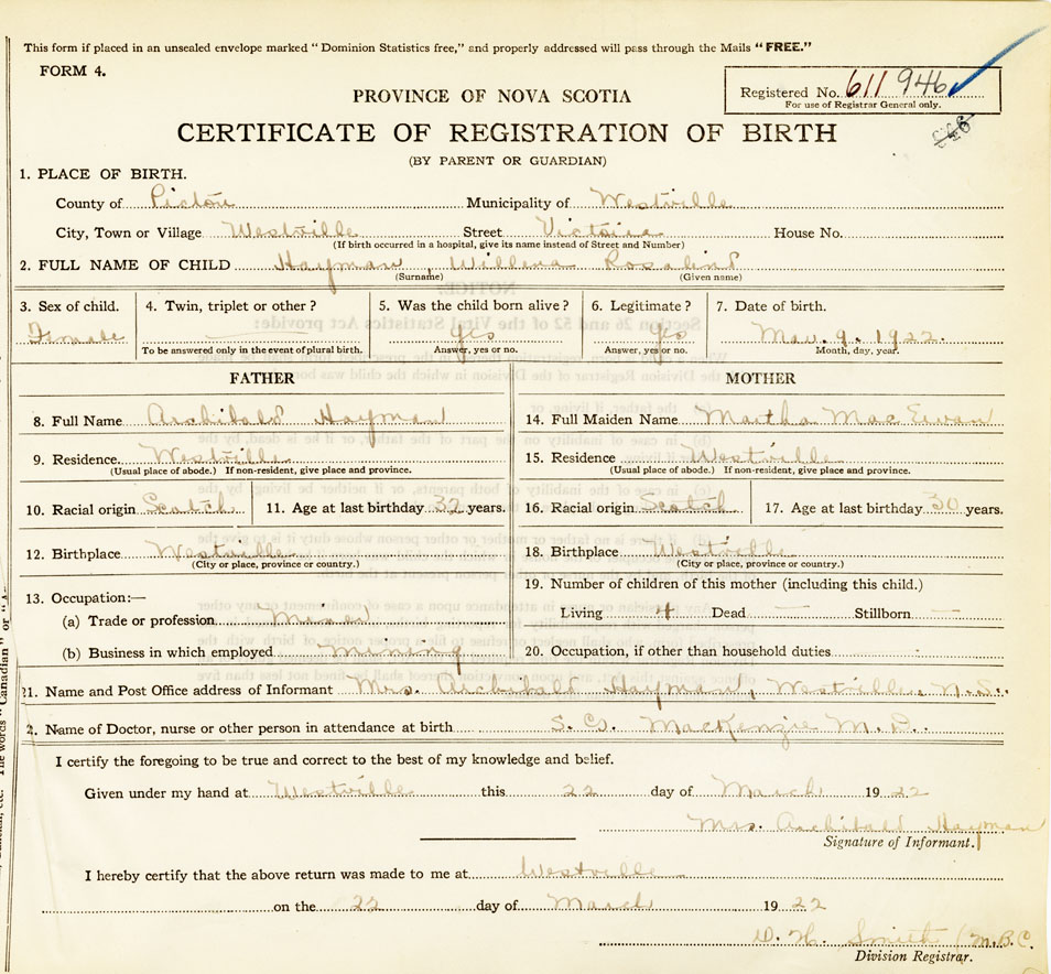 Nova Scotia Archives — https://archives.novascotia.ca/vital-statistics/birth/?ID=421835