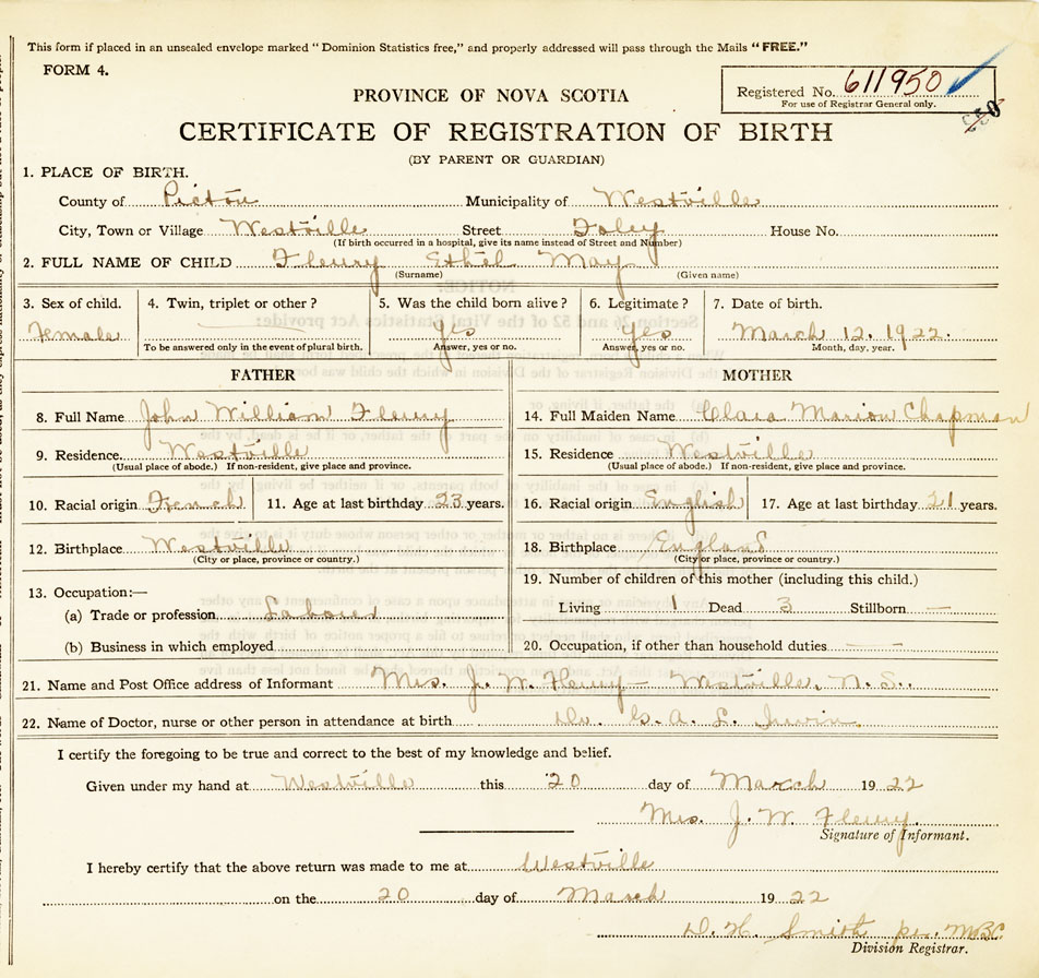 Nova Scotia Archives — https://archives.novascotia.ca/vital-statistics/birth/?ID=421839