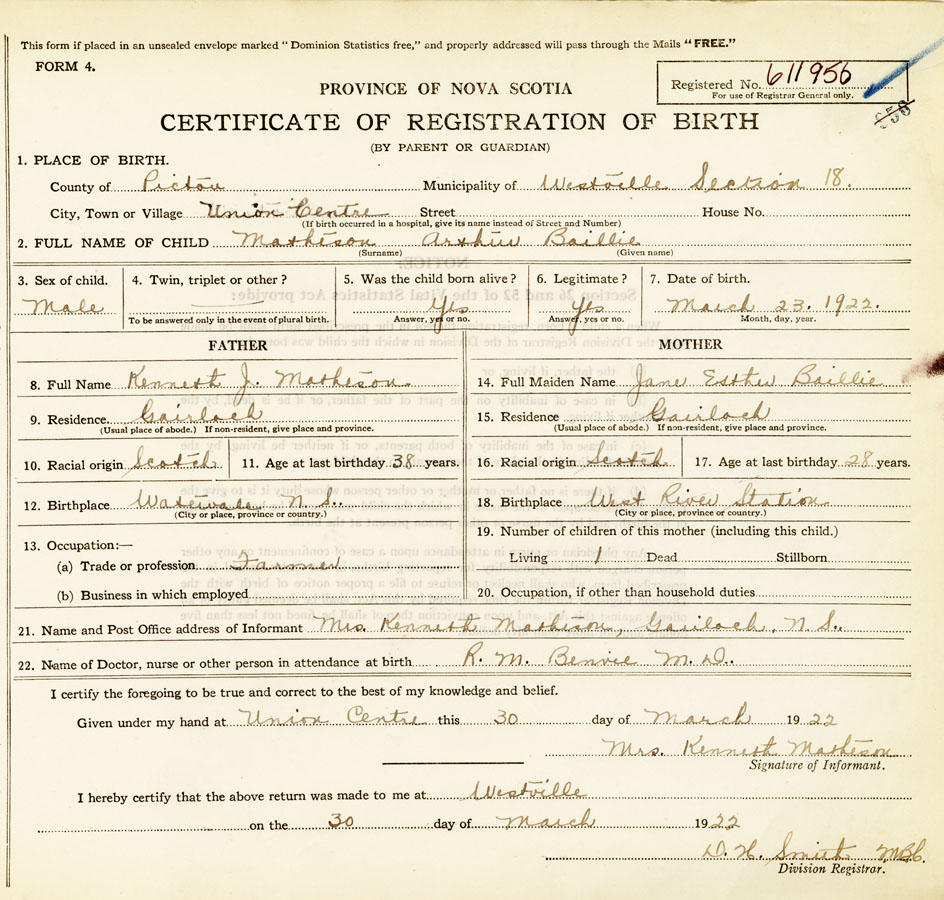 Nova Scotia Archives — https://archives.novascotia.ca/vital-statistics/birth/?ID=421845