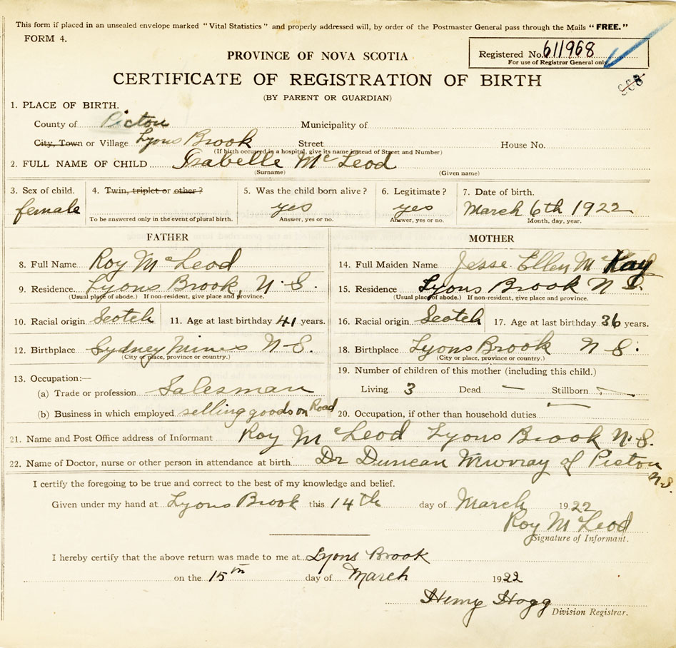 Nova Scotia Archives — https://archives.novascotia.ca/vital-statistics/birth/?ID=421857