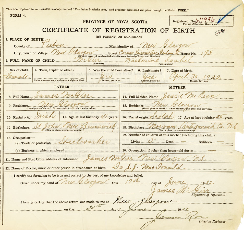 Nova Scotia Archives — https://archives.novascotia.ca/vital-statistics/birth/?ID=421884