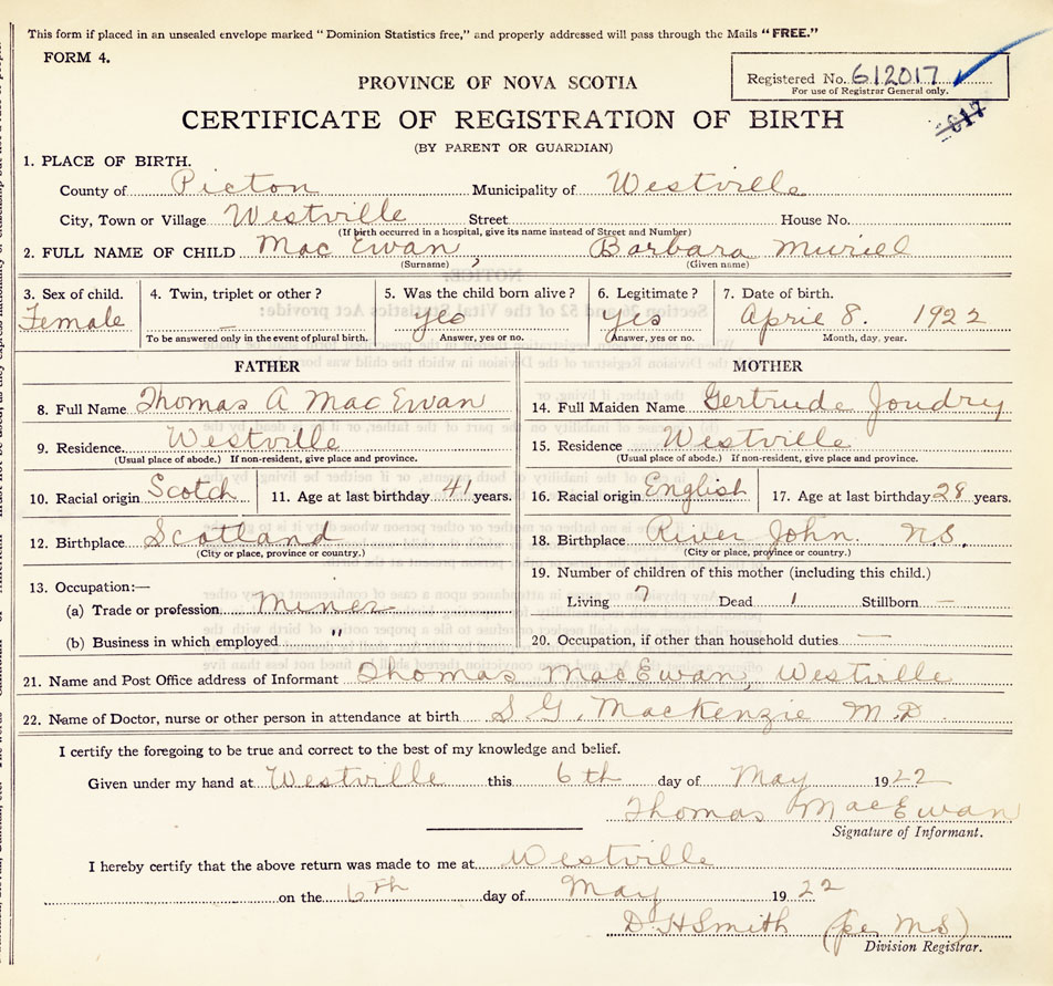 Nova Scotia Archives — https://archives.novascotia.ca/vital-statistics/birth/?ID=421905