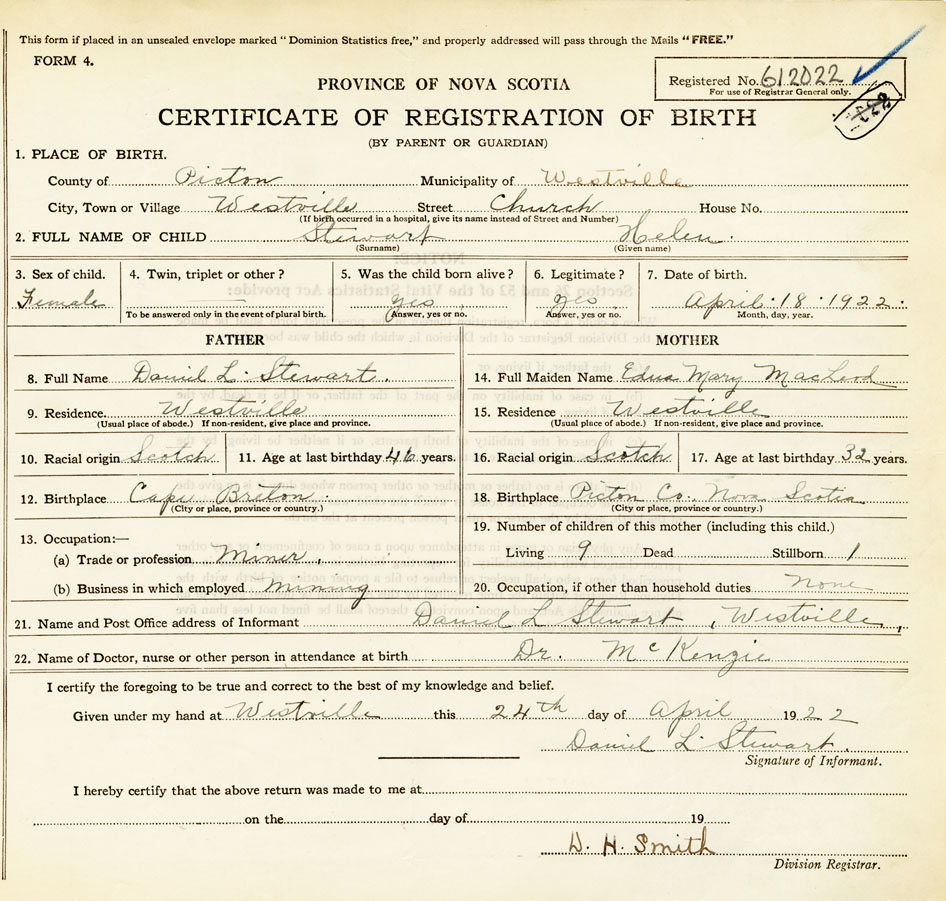 Nova Scotia Archives — https://archives.novascotia.ca/vital-statistics/birth/?ID=421910