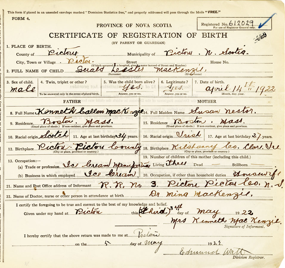 Nova Scotia Archives — https://archives.novascotia.ca/vital-statistics/birth/?ID=421917