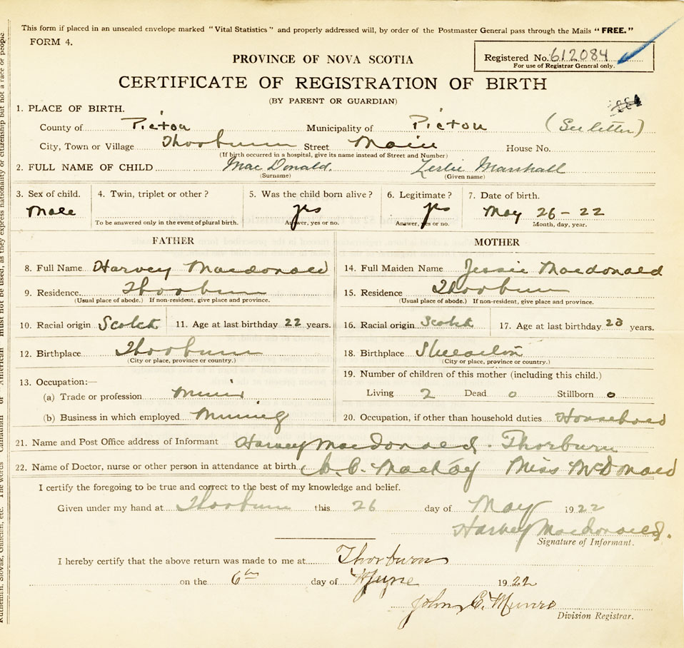 Nova Scotia Archives — https://archives.novascotia.ca/vital-statistics/birth/?ID=421971