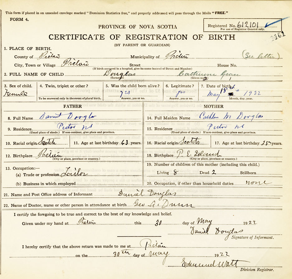 Nova Scotia Archives — https://archives.novascotia.ca/vital-statistics/birth/?ID=421988
