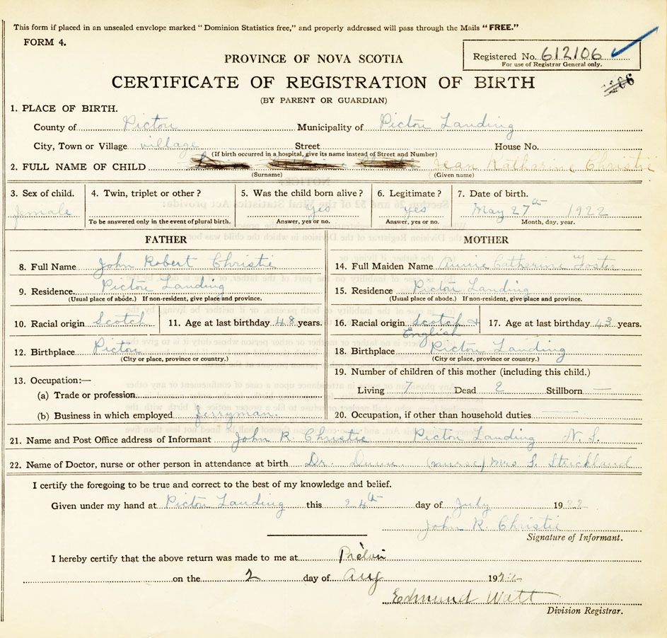 Nova Scotia Archives — https://archives.novascotia.ca/vital-statistics/birth/?ID=421993