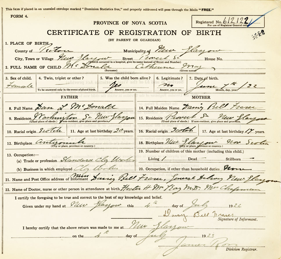Nova Scotia Archives — https://archives.novascotia.ca/vital-statistics/birth/?ID=422009