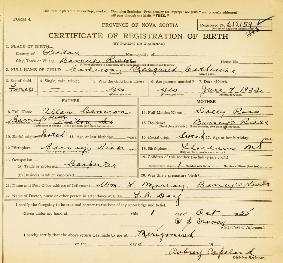 Nova Scotia Archives — https://archives.novascotia.ca/vital-statistics/birth/?ID=422041