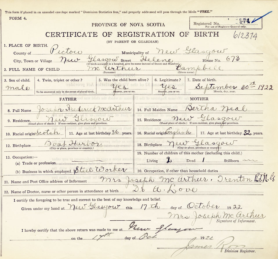 Nova Scotia Archives — https://archives.novascotia.ca/vital-statistics/birth/?ID=422258