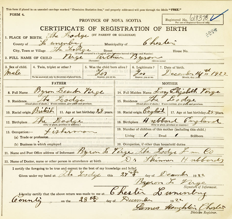 21. Name and Post Office address of Informant Byron L Verge The Lodge Lunenburg Co