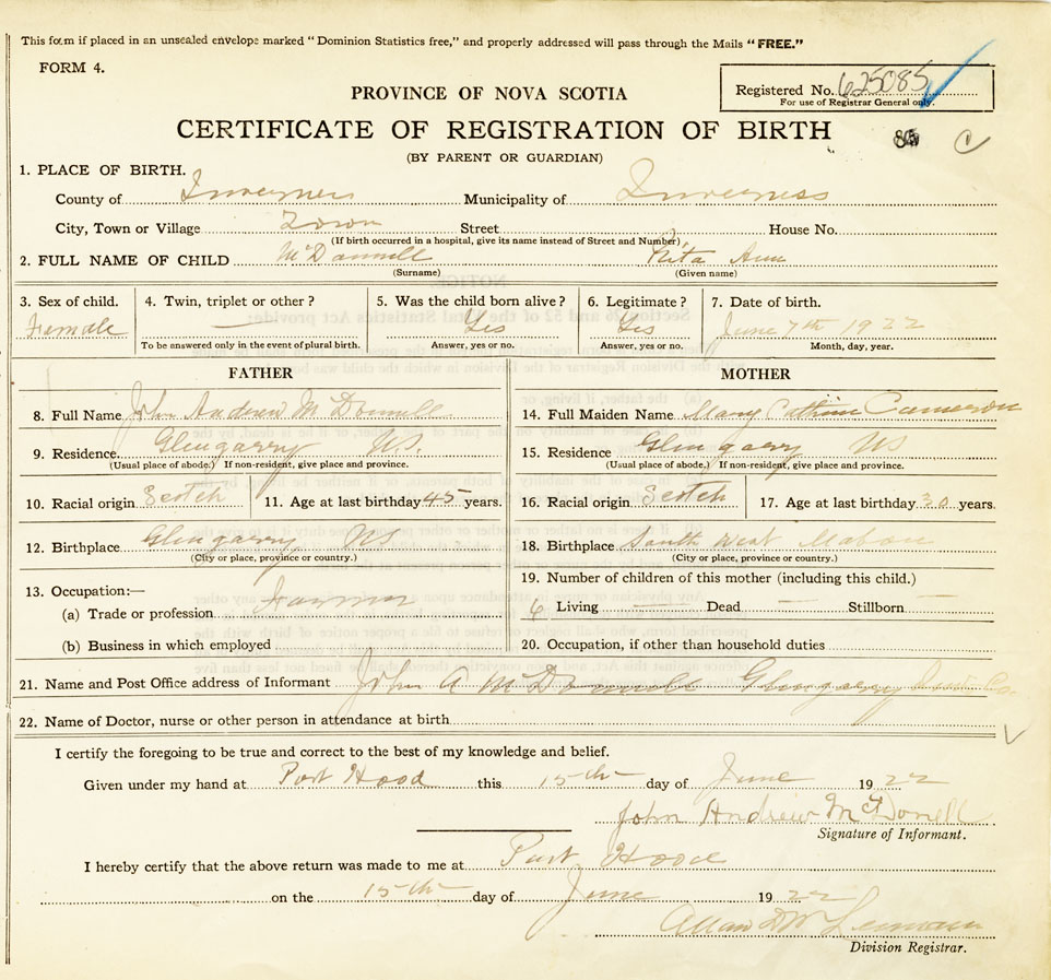 Nova Scotia Archives — https://archives.novascotia.ca/vital-statistics/birth/?ID=423819