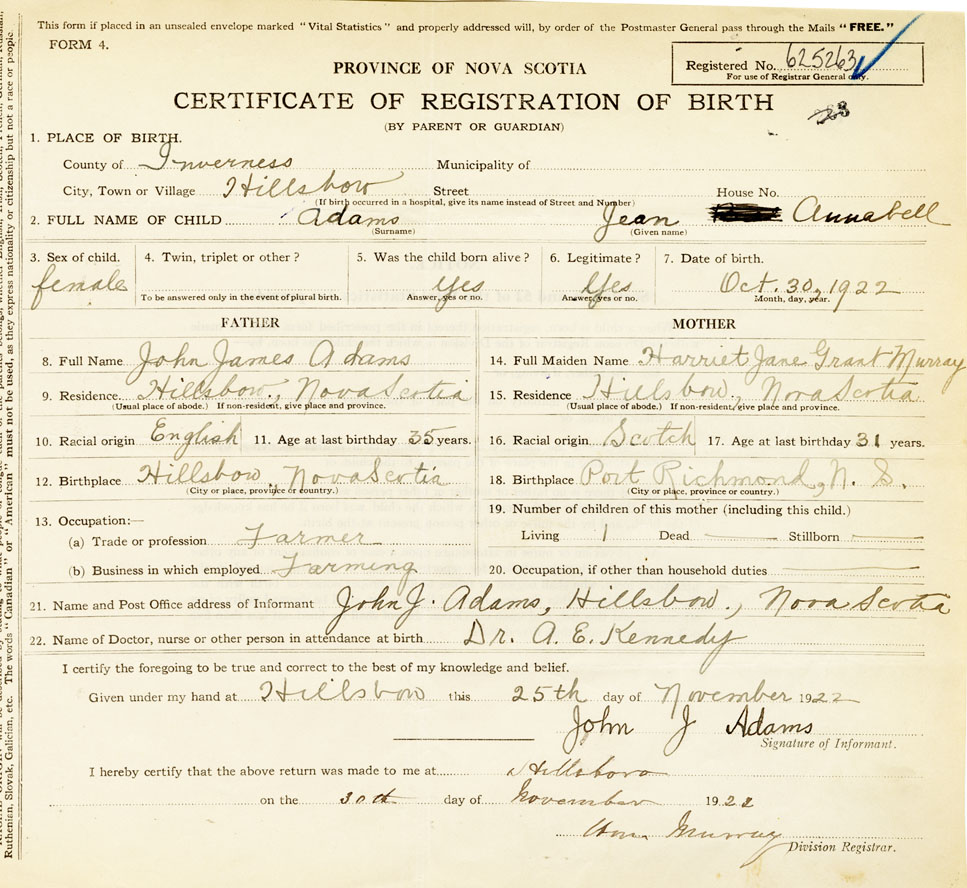 Nova Scotia Archives — https://archives.novascotia.ca/vital-statistics/birth/?ID=423996