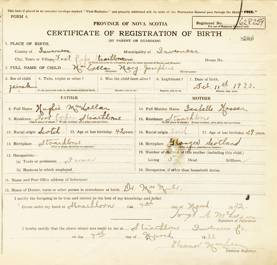 2. FULL NAME OF CHILD MacLellan, Mary Josephine