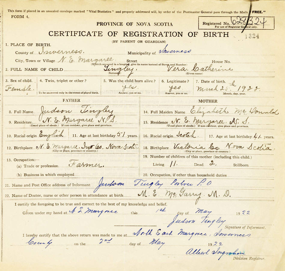 12. Birthplace N. E. Margaree, Inv.Co.