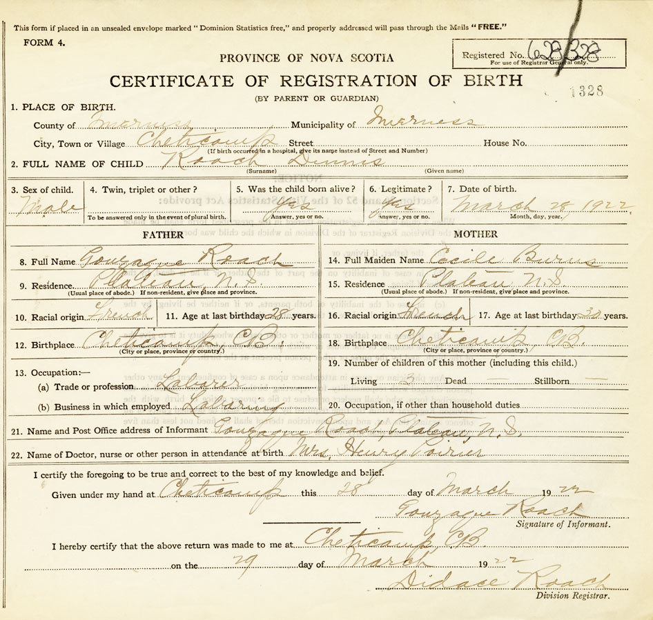 Male Birth Registration: Year: 1922 number: 62800328