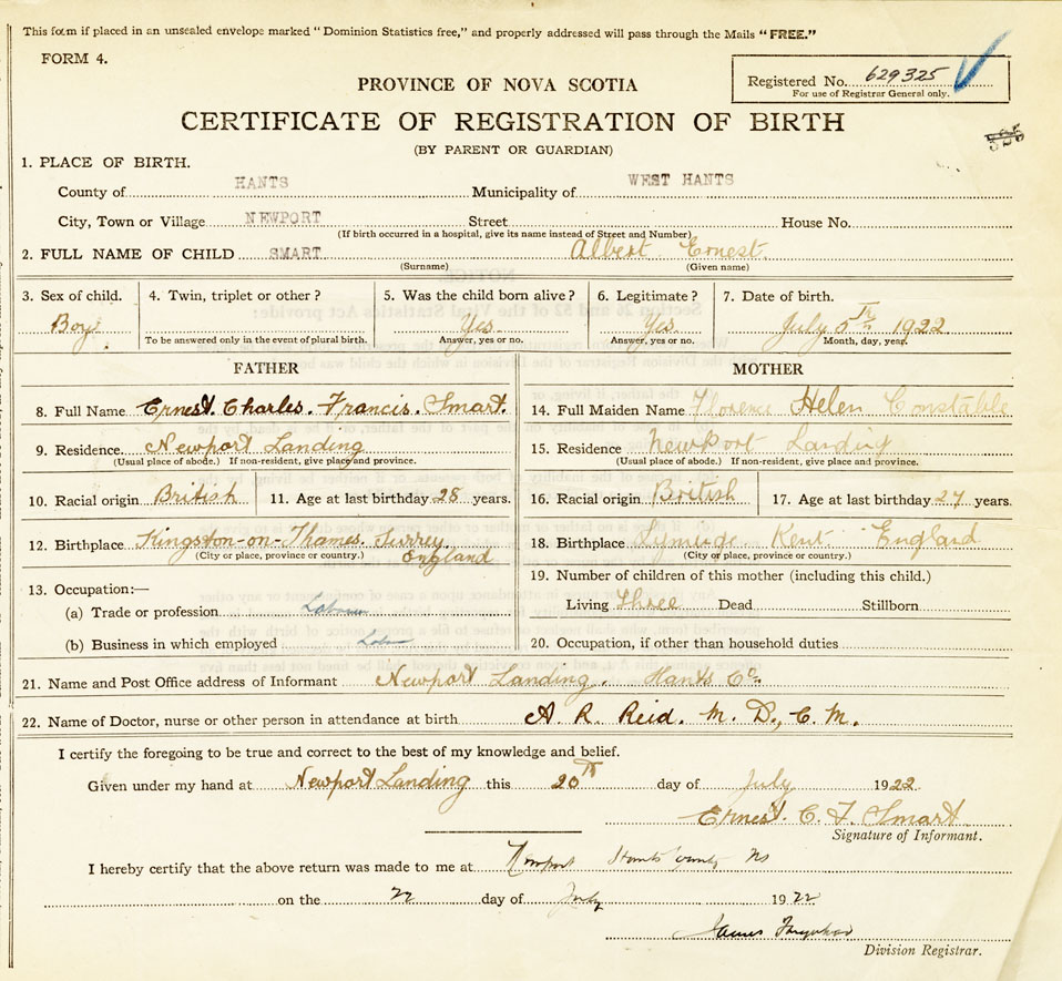 2. FULL NAME OF CHILD Smart, Albert Ernest