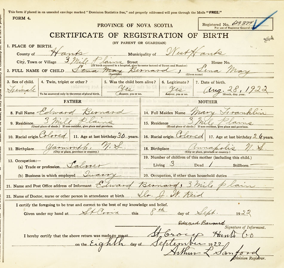 21. Name and Post Office address of Informant Edward Bernard Three Mile Plains
