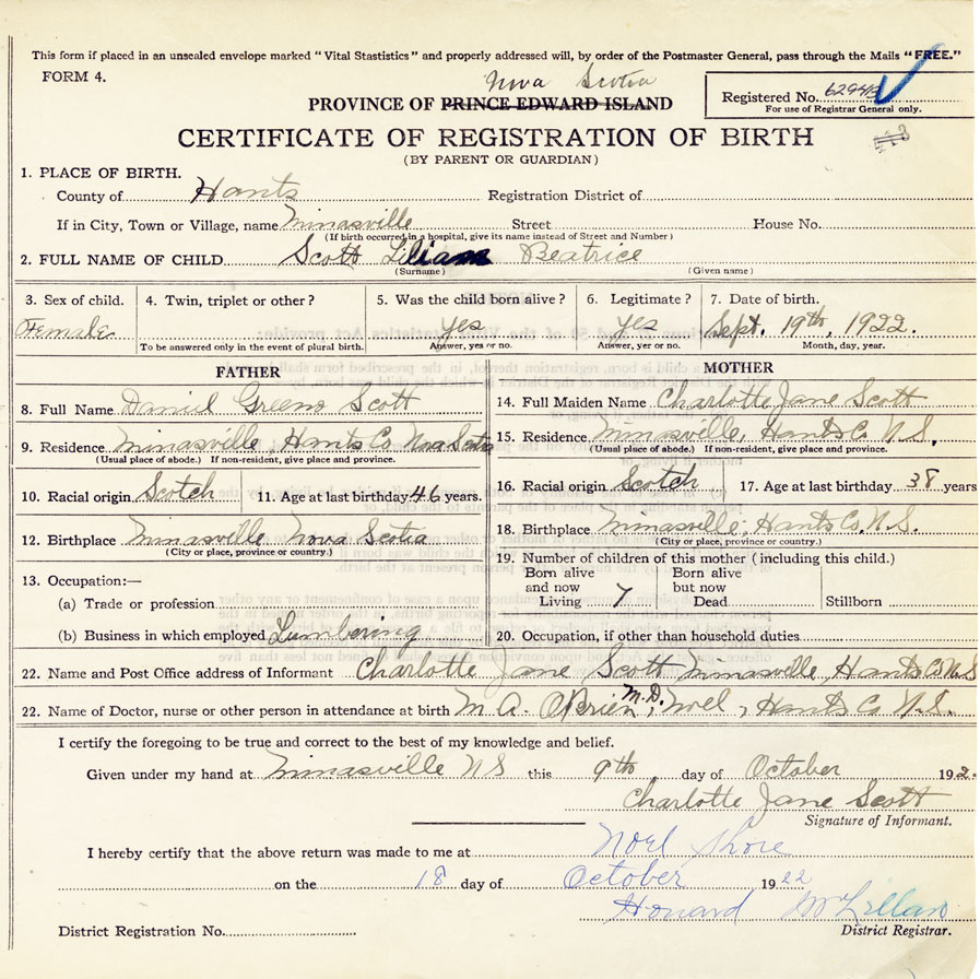 2. FULL NAME OF CHILD Scott, Lilian Beatrice