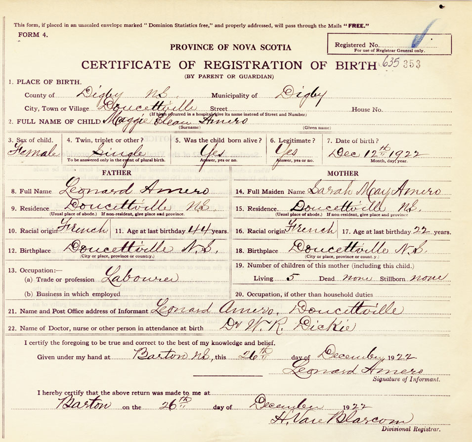 18. Birthplace Doucettville N.S.