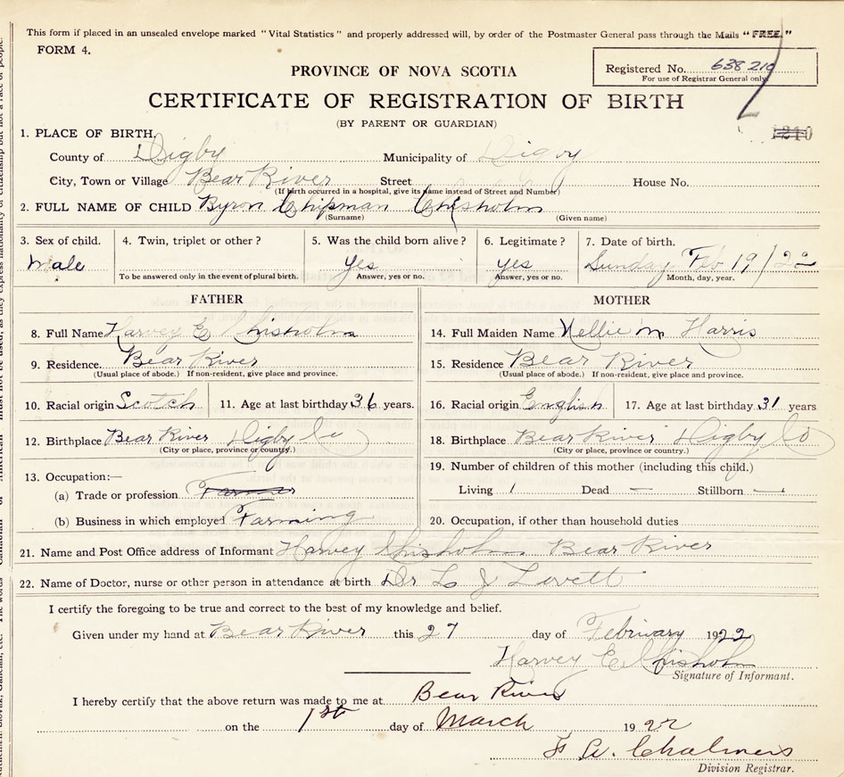 18. Birthplace Bear River, Digby Co