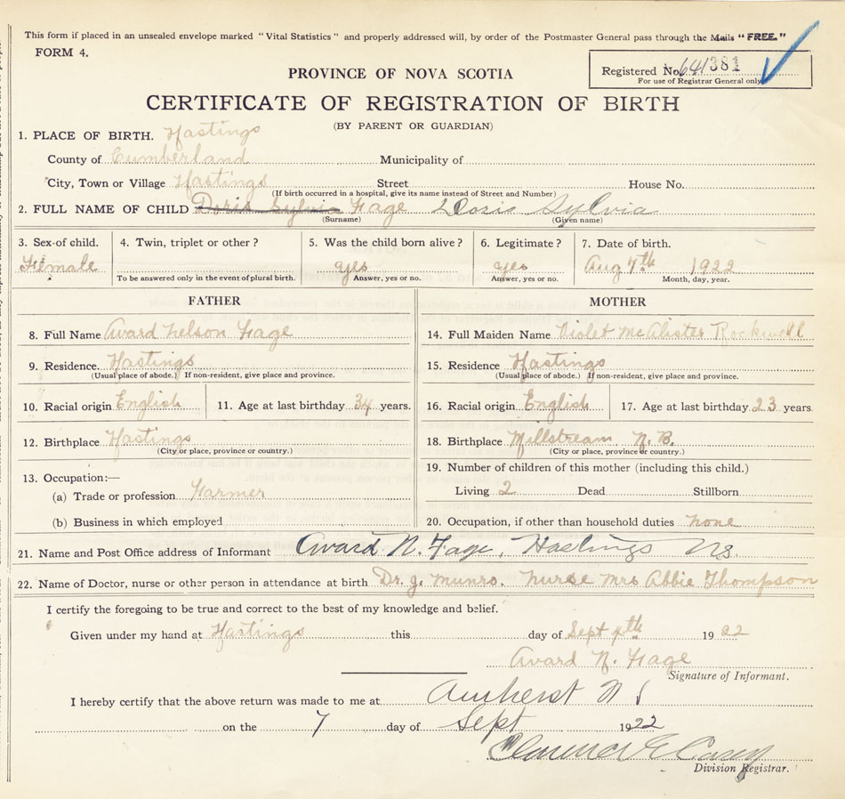 Nova Scotia Archives — https://archives.novascotia.ca/vital-statistics/birth/?ID=426122