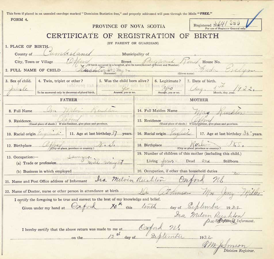 Nova Scotia Archives — https://archives.novascotia.ca/vital-statistics/birth/?ID=426131