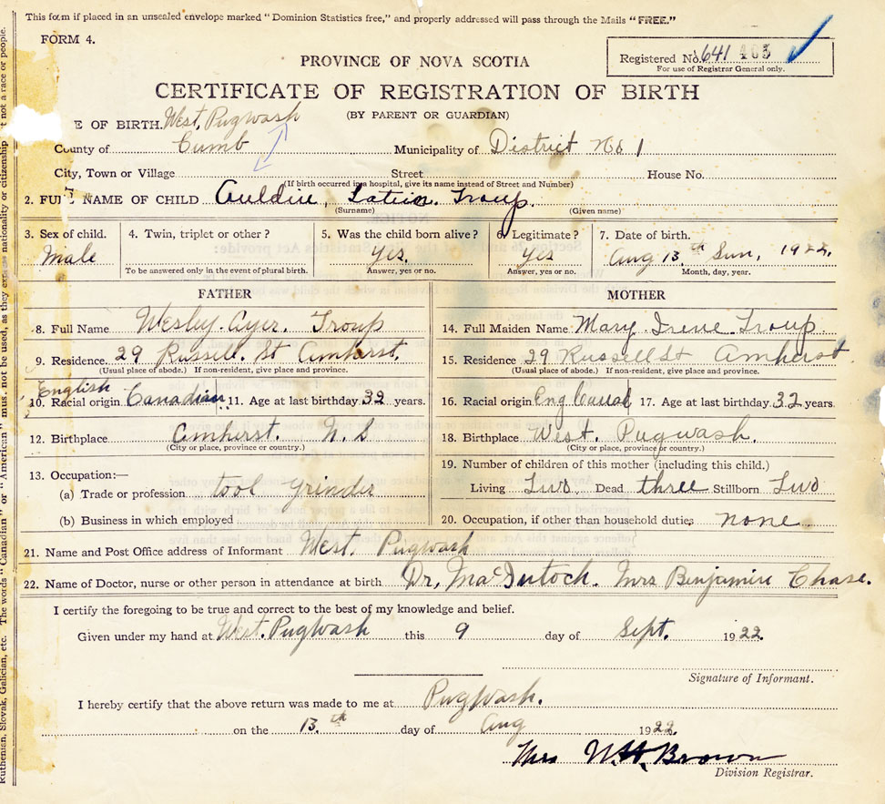 Nova Scotia Archives — https://archives.novascotia.ca/vital-statistics/birth/?ID=426146