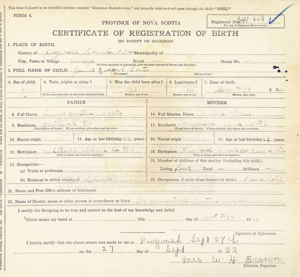 Nova Scotia Archives — https://archives.novascotia.ca/vital-statistics/birth/?ID=426147