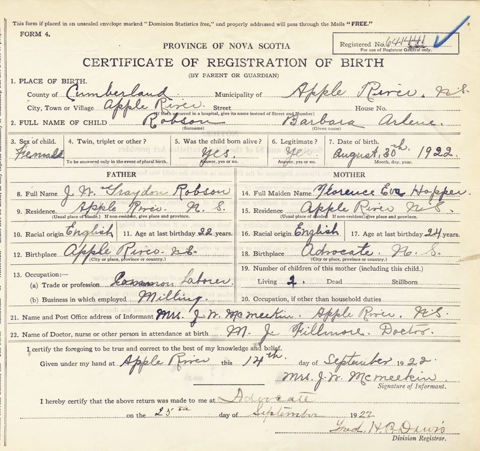 Nova Scotia Archives — https://archives.novascotia.ca/vital-statistics/birth/?ID=426182