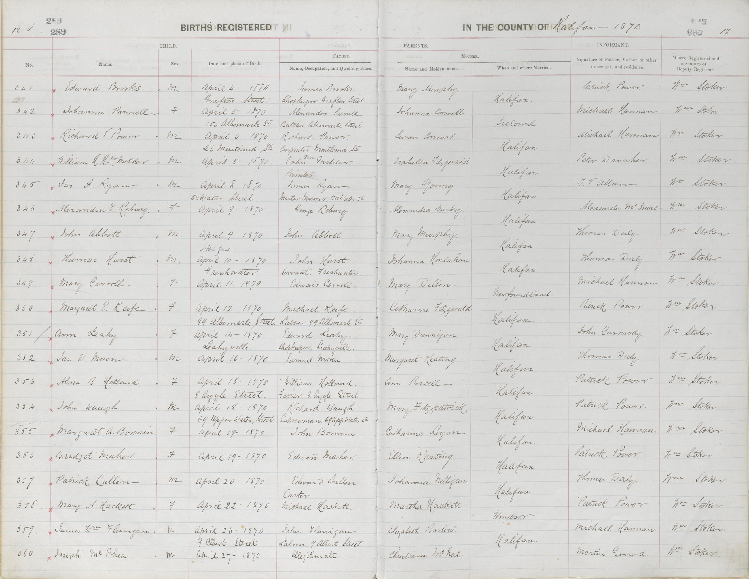 Birth Registration: Year: 1870 book: 1810 page: 18 number: 341
