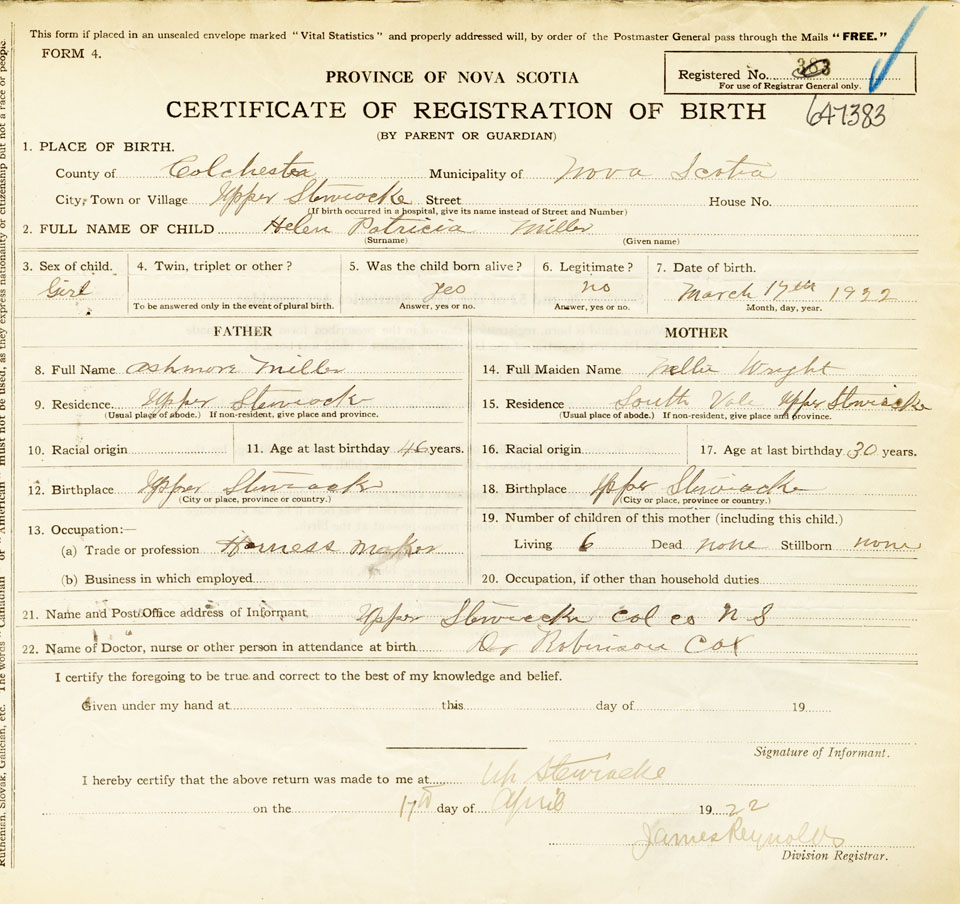 Nova Scotia Archives — https://archives.novascotia.ca/vital-statistics/birth/?ID=426908