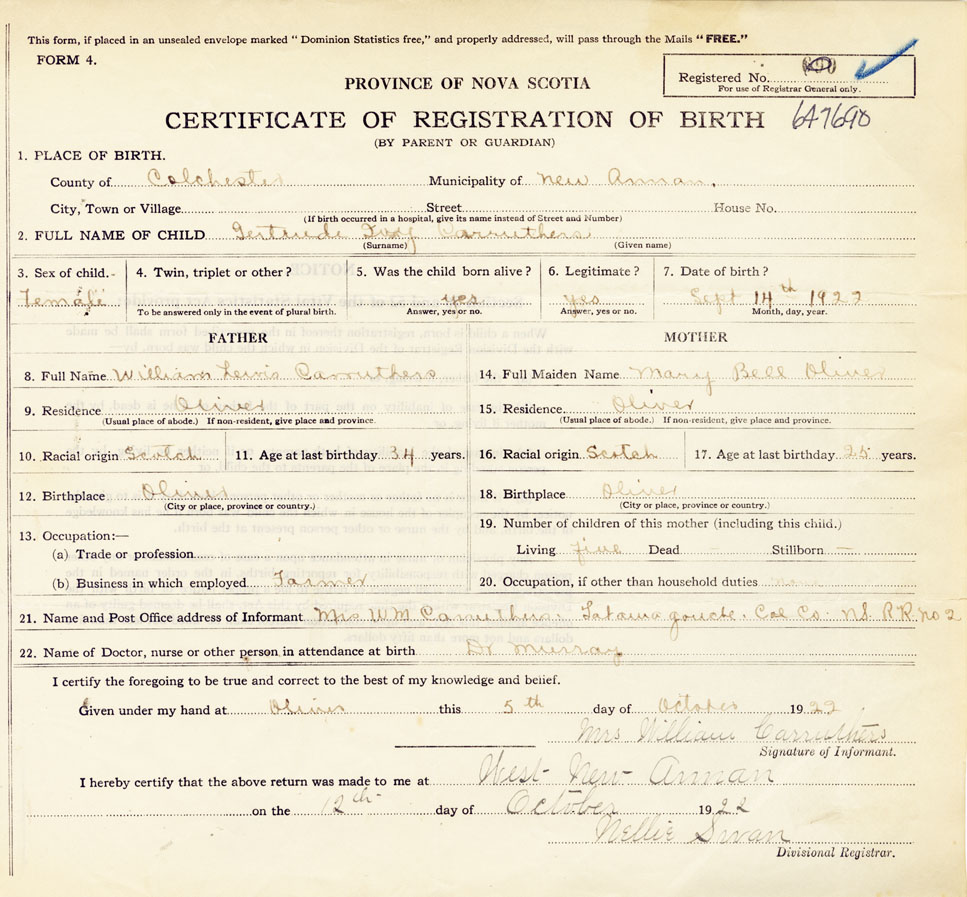 Nova Scotia Archives — https://archives.novascotia.ca/vital-statistics/birth/?ID=427215