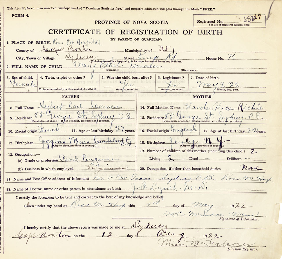Nova Scotia Archives — https://archives.novascotia.ca/vital-statistics/birth/?ID=427407