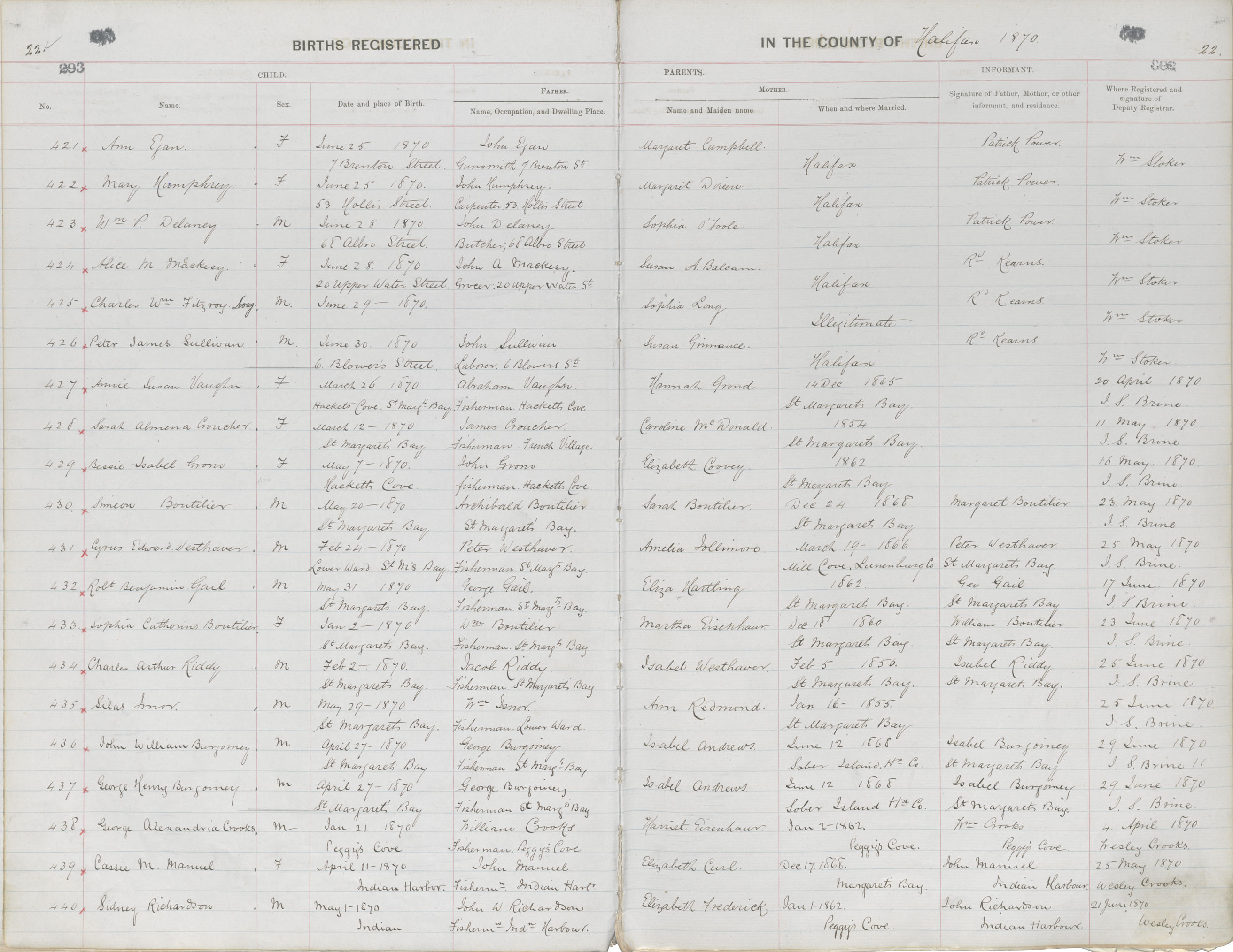 Birth Registration: Year: 1870 book: 1810 page: 22 number: 421
