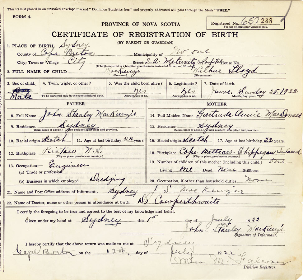2. FULL NAME OF CHILD MacKenzie, Wilbur Lloyd