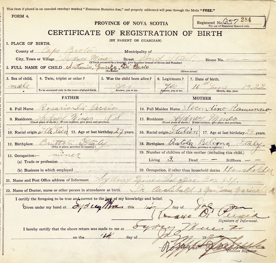 21. Name and Post Office address of Informant Rosario DiPersia Sydney Mines Post Office Box 437