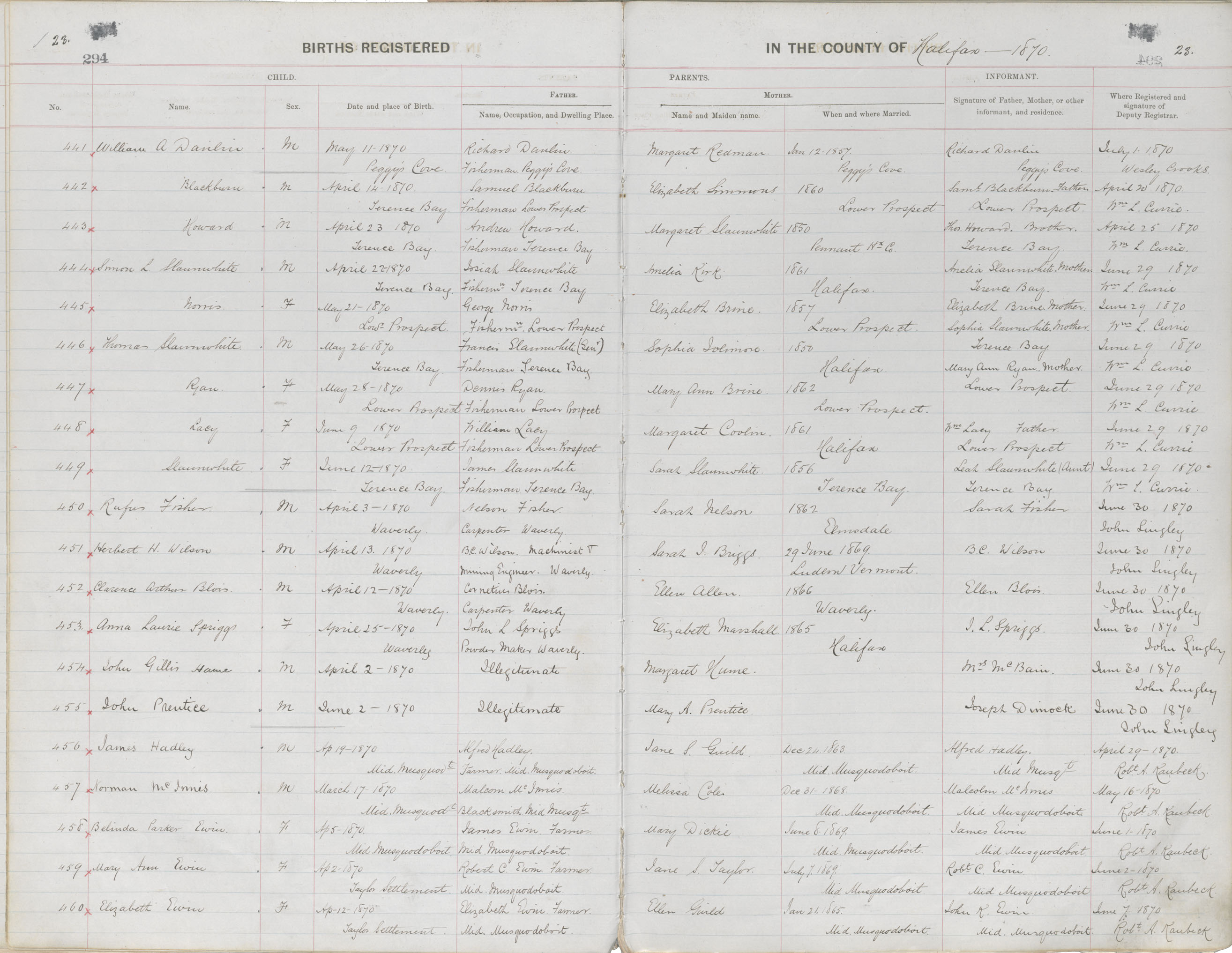 Birth Registration: Year: 1870 book: 1810 page: 23 number: 441