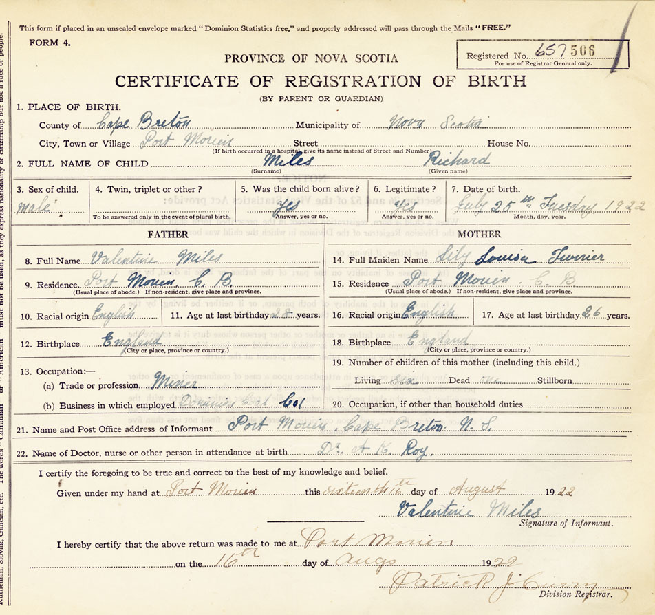 21. Name and Post Office address of Informant Port Morien, Cape Breton